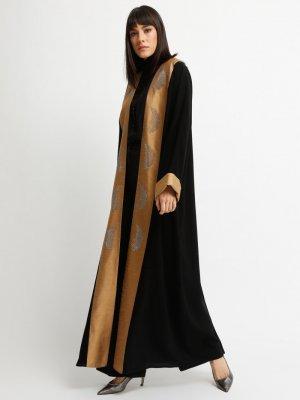 AL SHEIKHA Siyah Gold Yaprak Detaylı Ferace