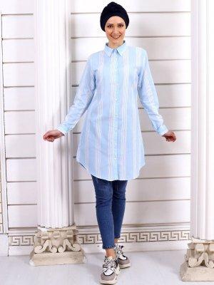 Por La Cara Bebe Mavi Dikine Kalın Çizgili Gömlek