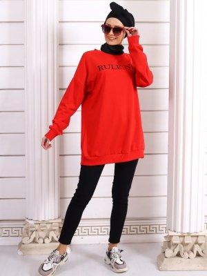 Por La Cara Kırmızı Yazı Baskılı Tunik