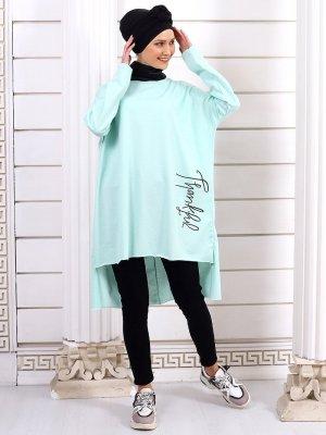 Por La Cara Çağla Etek Kısmı Kesik Yazı Detaylı Tunik