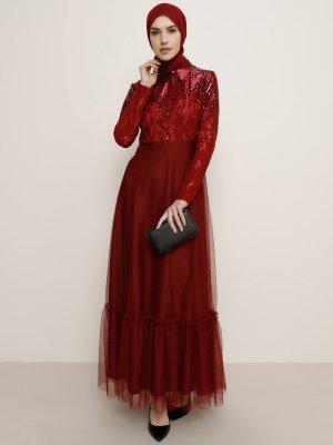 Tavin Bordo Payetli Abiye Elbise