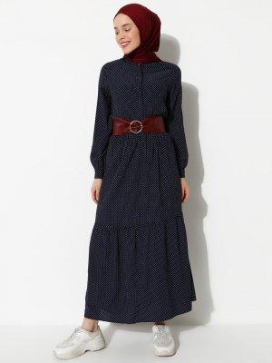 İLMEK TRİKO Lacivert Gizli Düğme Detaylı Elbise