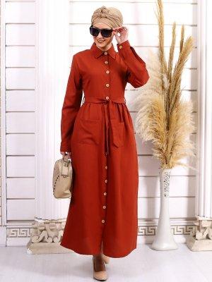 Por La Cara Toprak Boydan Düğmeli Cepli Elbise