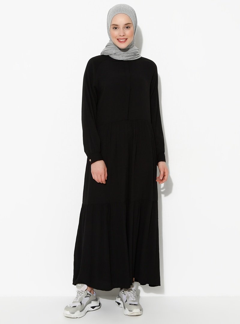 İLMEK TRİKO Siyah Gizli Düğme Detaylı Elbise