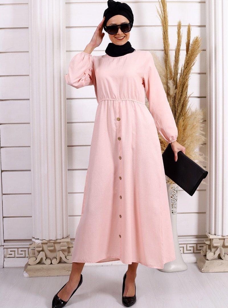 Por La Cara Pudra Beli Lastikli Düğmeli Elbise