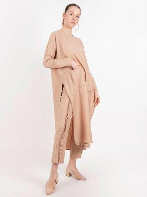 Loreen By Puane Bej Yırtmaçlı Salaş Tunik&Pantolon İkili Takım