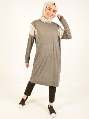 PLİSTRE Gri Koyu Garnili Tunik