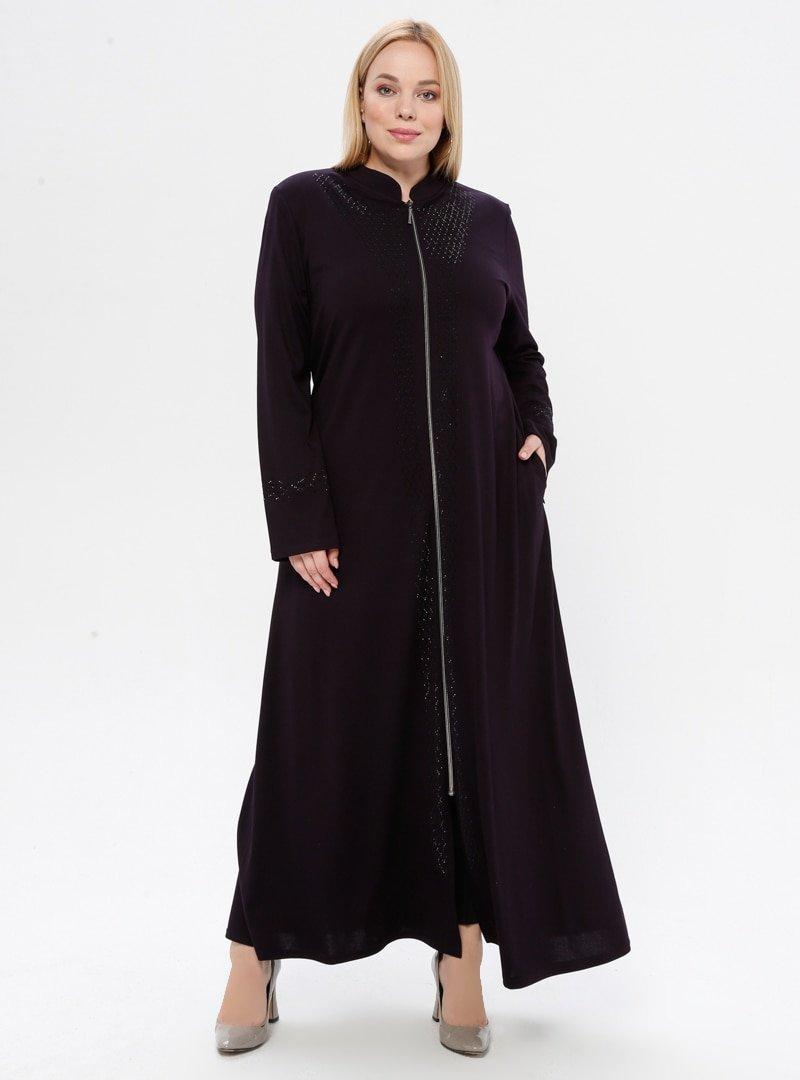 GELİNCE Mürdüm Drop Baskılı Ferace