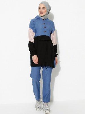 Sevit-Li İndigo Siyah Tunik&Pantolon İkili Takım