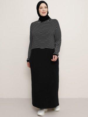 Alia Siyah Kapüşon Detaylı Çizgili Elbise