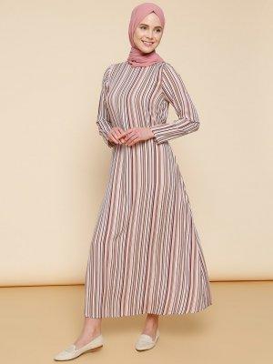 Mnatural Pudra Doğal Kumaşlı Çizgili Elbise