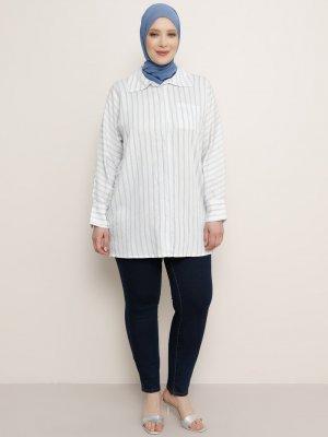 Alia Mavi Ekru Cep Detaylı Çizgili Tunik
