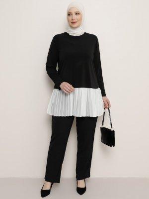 Alia Siyah Ekru Pilise Detaylı Tunik