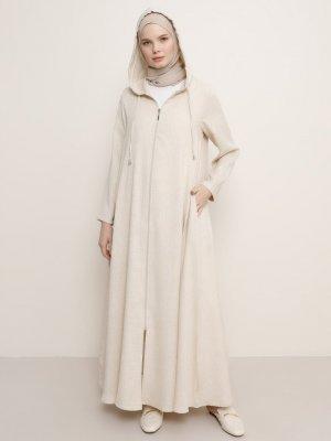 Benin Bej Kapüşon Detaylı Fermuarlı Ferace
