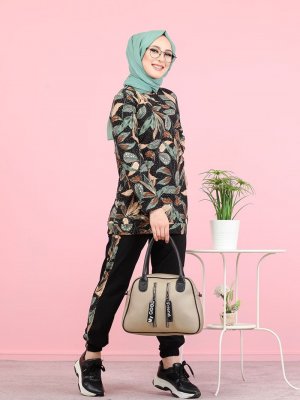 Tofisa Siyah Yeşil Desenli İkili Takım