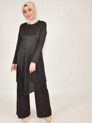 PLİSTRE Siyah Tunik&Pantolon İkili Takım