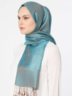 Lumire Şal Turkuaz Jakarlı Şal