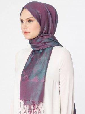 Lumire Şal Mor Yeşil Jakarlı Şal