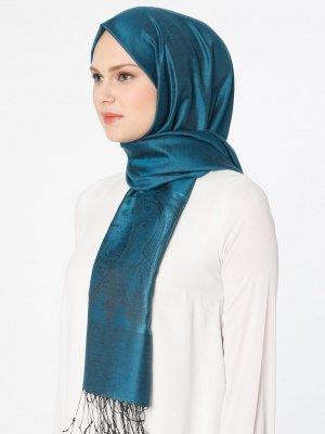 Lumire Şal Petrol Yeşili Jakarlı Şal