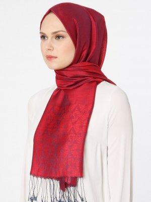 Lumire Şal Kırmızı Lacivert Jakarlı Şal