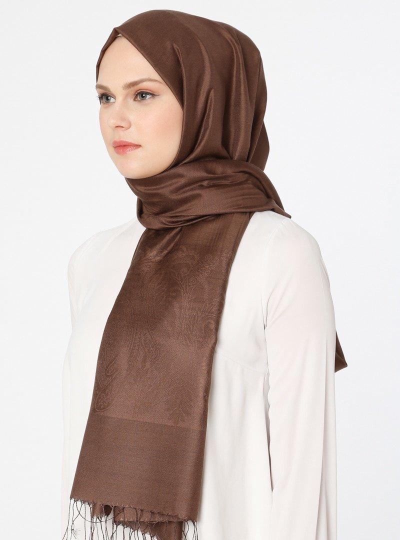 Lumire Şal Kahverengi Jakarlı Şal