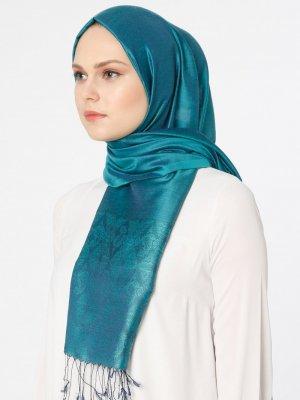 Lumire Şal Yeşil Lacivert Jakarlı Şal