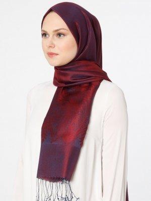 Lumire Şal Bordo Lacivert Jakarlı Şal