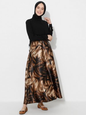 Almera Koyu Vizon Çiçek Desenli Etek