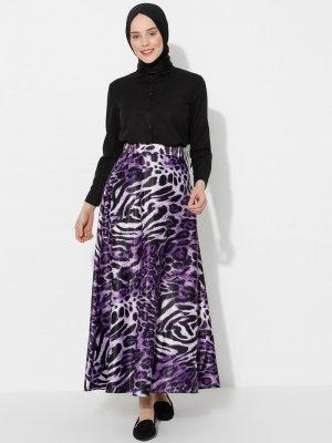 Almera Mor Siyah Leopar Desenli Etek