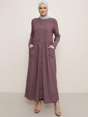 Alia Mor Mistik Doğal Kumaşlı Cep Detaylı Elbise