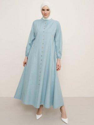 Alia Mavi Soft Boydan Düğmeli Elbise