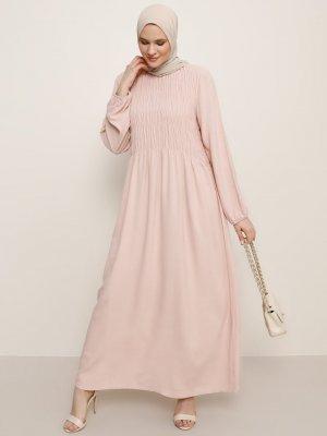 Alia Pudra Doğal Kumaşlı Büzgü Detaylı Elbise