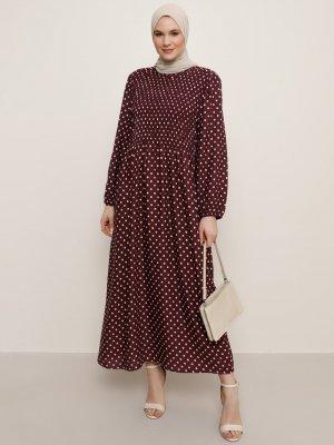 Alia Mor Mistik Pudra Doğal Kumaşlı Puantiye Desenli Elbise