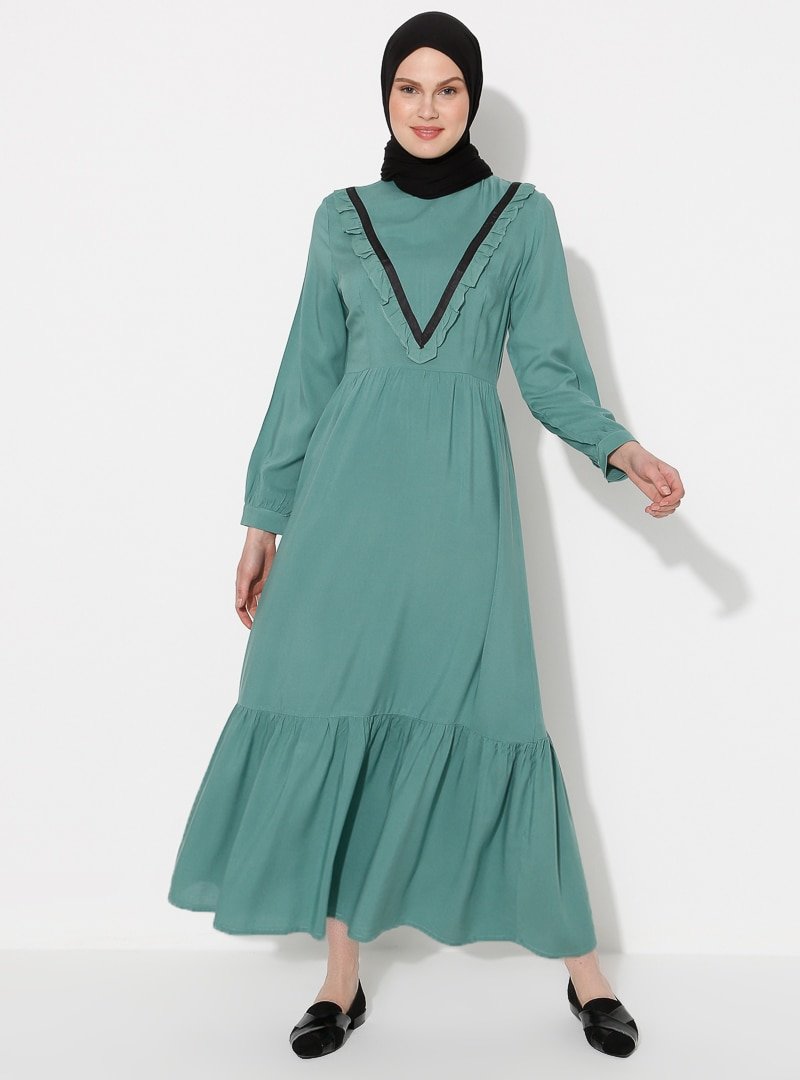 A point Yeşil Fırfırlı Elbise
