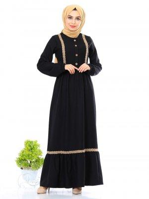 Pink Lady`s Siyah Hasır Detaylı Krep Elbise