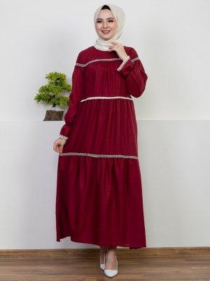 Pink Lady`s Bordo Dantel Şerit Katlı Elbise