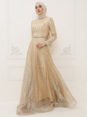 Mileny Gold Payetli Abiye Elbise