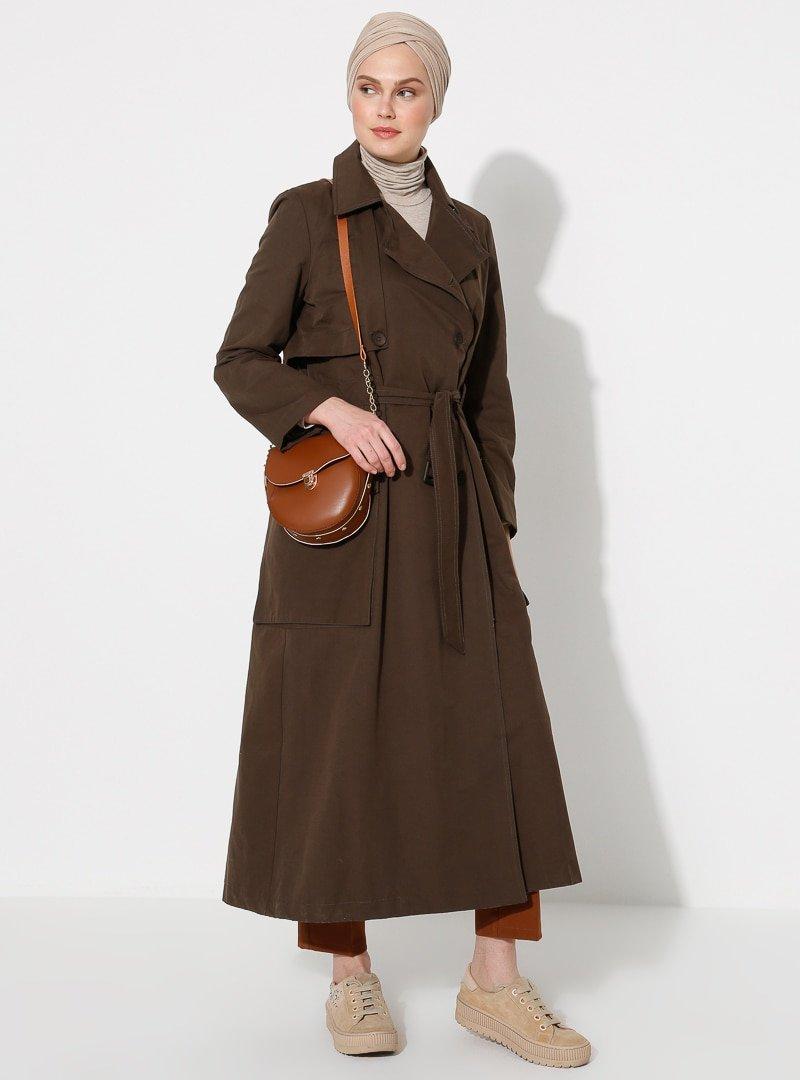 YAQA Haki Düğme Detaylı Trençkot