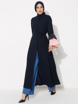 Filizzade Lacivert Pudra Kol Detaylı Ferace