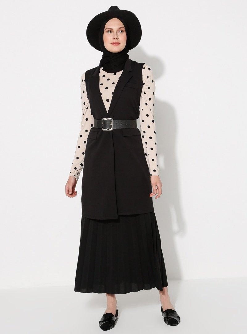 İroni Siyah Sade Yelek