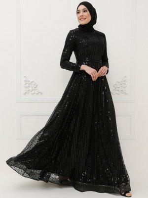Mileny Siyah Payetli Abiye Elbise