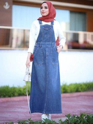 Neways Mavi Koyu Kot Salopet Elbise