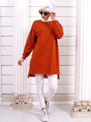 Por La Cara Kiremit Önde Resever Yazılı Yırtmaçlı Tunik