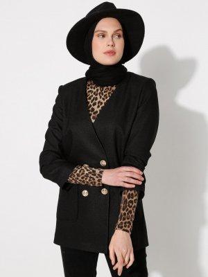İroni Siyah Düğmeli Ceket