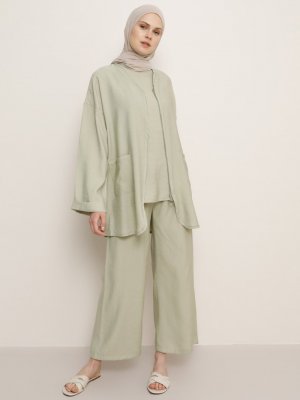 Benin Yeşil Pastel i Kolsuz Bluz&Pantolon 2'li Takım