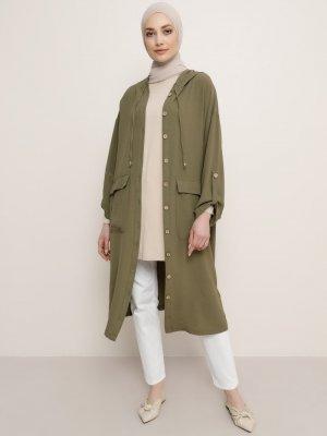 Refka Haki Kapüşon Detaylı Cepli Trençkot