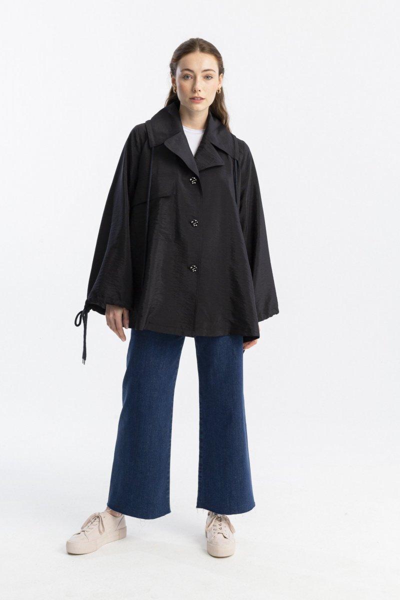 TOUCHE Siyah Bağcıklı İnce Ceket