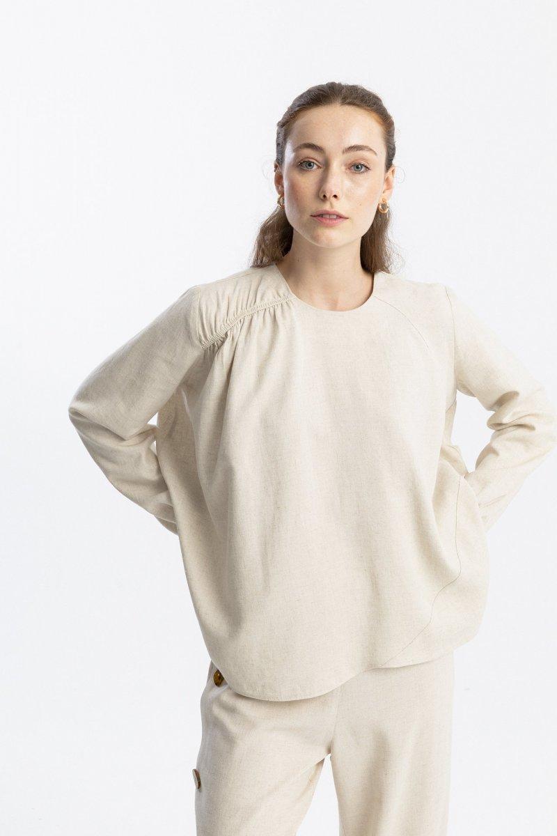 TOUCHE Bej Büzgülü Asimetrik Bluz