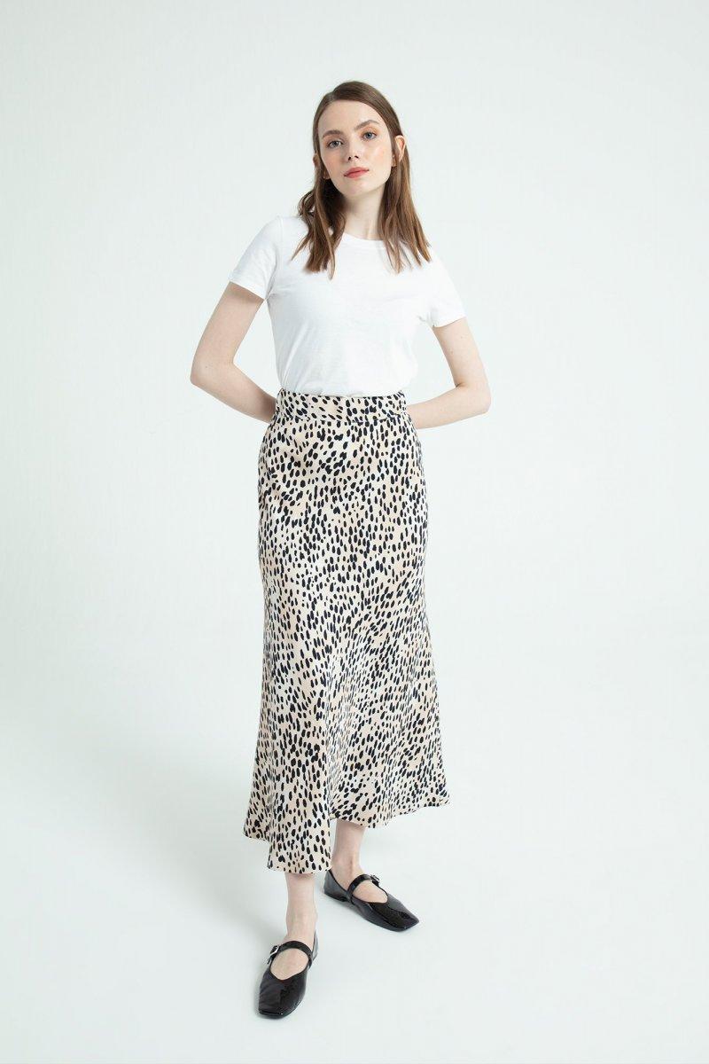 TOUCHE Bej Animal Print Etek