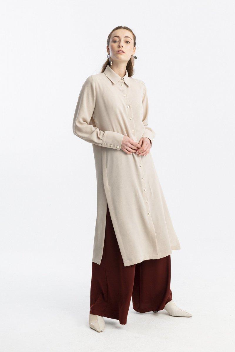 TOUCHE Taş Yırtmaçlı Midi Tunik